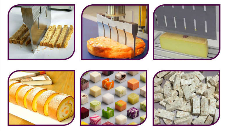 2. Per alimenti porosi, come pane, torte, marshmallow e simili, la loro caratteristica comune è una struttura in spugna multi-vuota. Inoltre, è facilmente deformabile dalla compressione. Se viene utilizzato un utensile da taglio convenzionale, è possibile ottenere solo una parziale incrinatura e, se viene ulteriormente tagliato, sarà distorto o rotto. Ma se usi il taglio ad ultrasuoni, otterrai buoni risultati. Poiché il taglio ad ultrasuoni può ridurre l'attrito generato dal processo di taglio, il lavoro di taglio può essere completato con una piccola forza di taglio.
